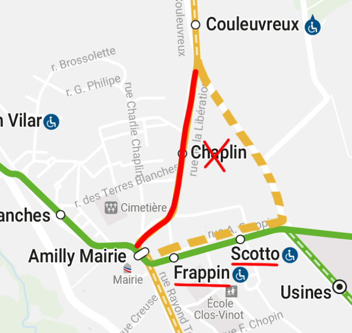 Du mercredi 15 avril au samedi 25 avril inclus, en raison de travaux rue de la Libération, l'arrêt Chaplin ne sera pas desservi.