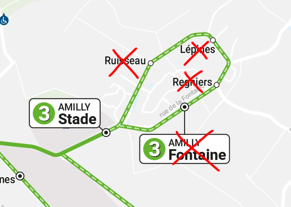 Du lundi 13 au samedi 25 avril inclus, en raison de travaux rue de la Fontaine à Amilly, les arrêts Ruisseau, Lépines, Régniers et Fontaine ne seront pas desservis.